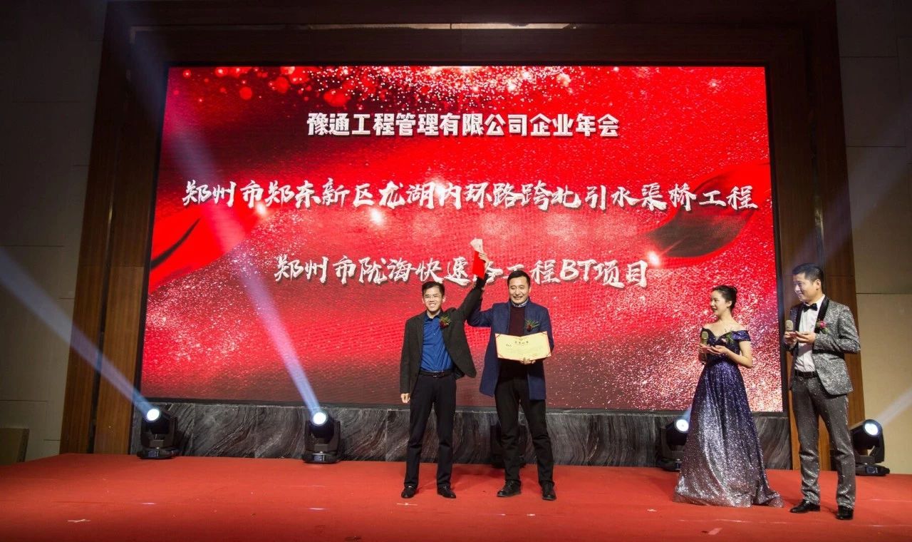 本次年會(huì)中,最讓人動(dòng)容的是2018年度表彰大會(huì)環(huán)節(jié)。公司共計(jì)頒發(fā)了“2018年度優(yōu)秀團(tuán)隊(duì)”獎(jiǎng)、“2018年度優(yōu)秀分公司”獎(jiǎng)、獲得“2018年度市政工程金杯”獎(jiǎng)項(xiàng)目、獲得“2018年度國(guó)家優(yōu)質(zhì)金杯”獎(jiǎng)項(xiàng)目、“2018年度項(xiàng)目?jī)?yōu)秀員工”獎(jiǎng)、“2018年度優(yōu)秀總監(jiān)”獎(jiǎng)、“2018年度公司優(yōu)秀員工”獎(jiǎng)七個(gè)獎(jiǎng)項(xiàng)以嘉獎(jiǎng)為公司發(fā)展默默付出的優(yōu)秀員工們。因?yàn)槊恳晃辉ネ胰说母冻觯庞辛瞬粩嗲靶小⒐矂?chuàng)輝煌的豫通管理!